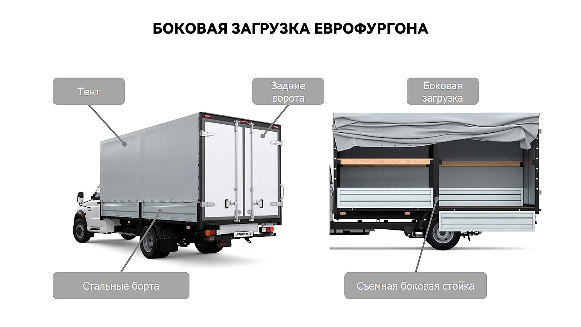 Зайдите внутрь будки, попросите закрыть тент и посмотрите на свет. Щели в углах и на стыке пола с бортами — это пыль и влага на вашем грузе. - Съемная боковая стойка.