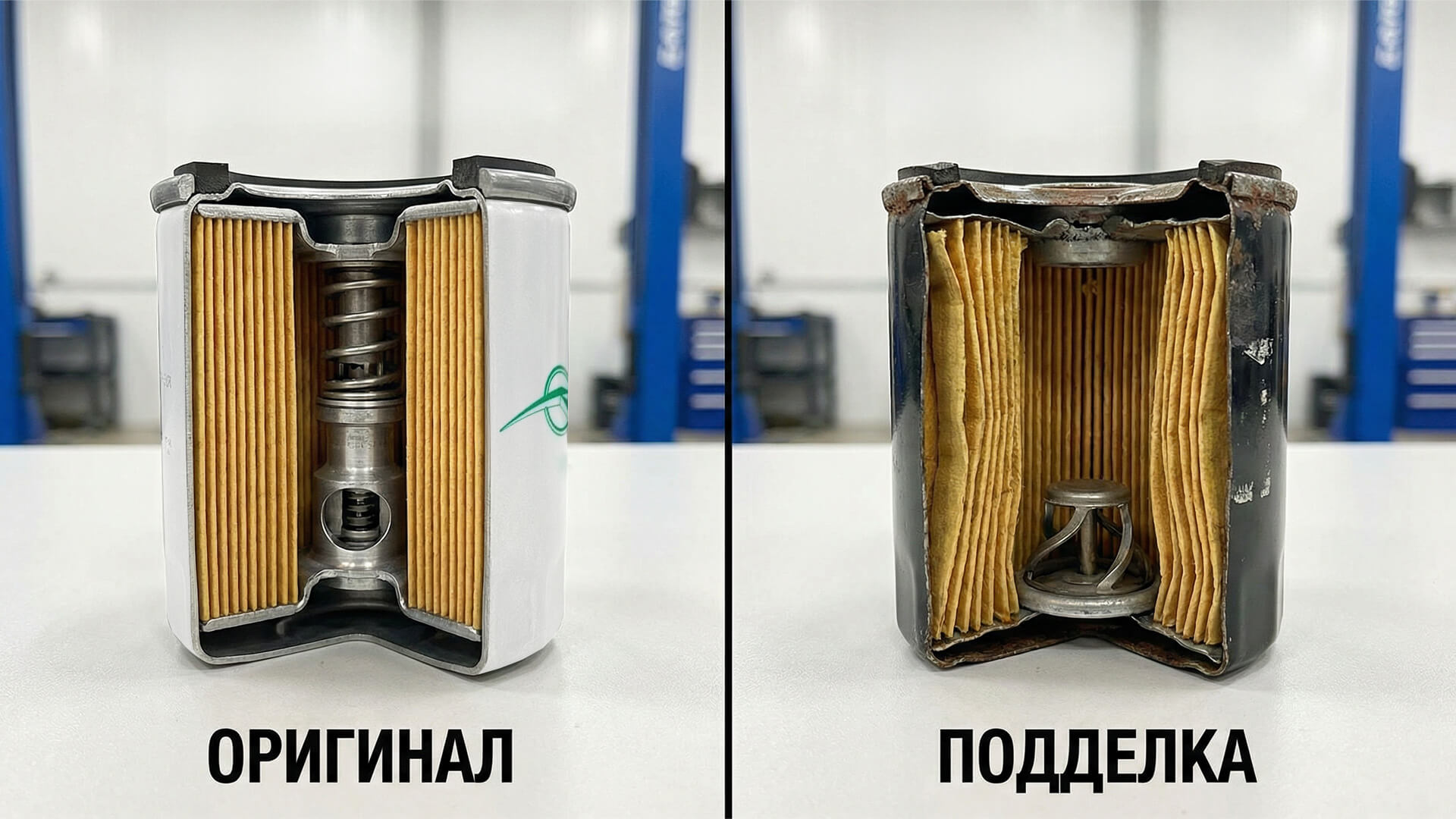 - Фильтры: В подделках часто не работает перепускной клапан. Зимой густое масло идет мимо фильтра или, наоборот, выдавливает сальники. Итог — масляное голодание и задиры в цилиндрах.