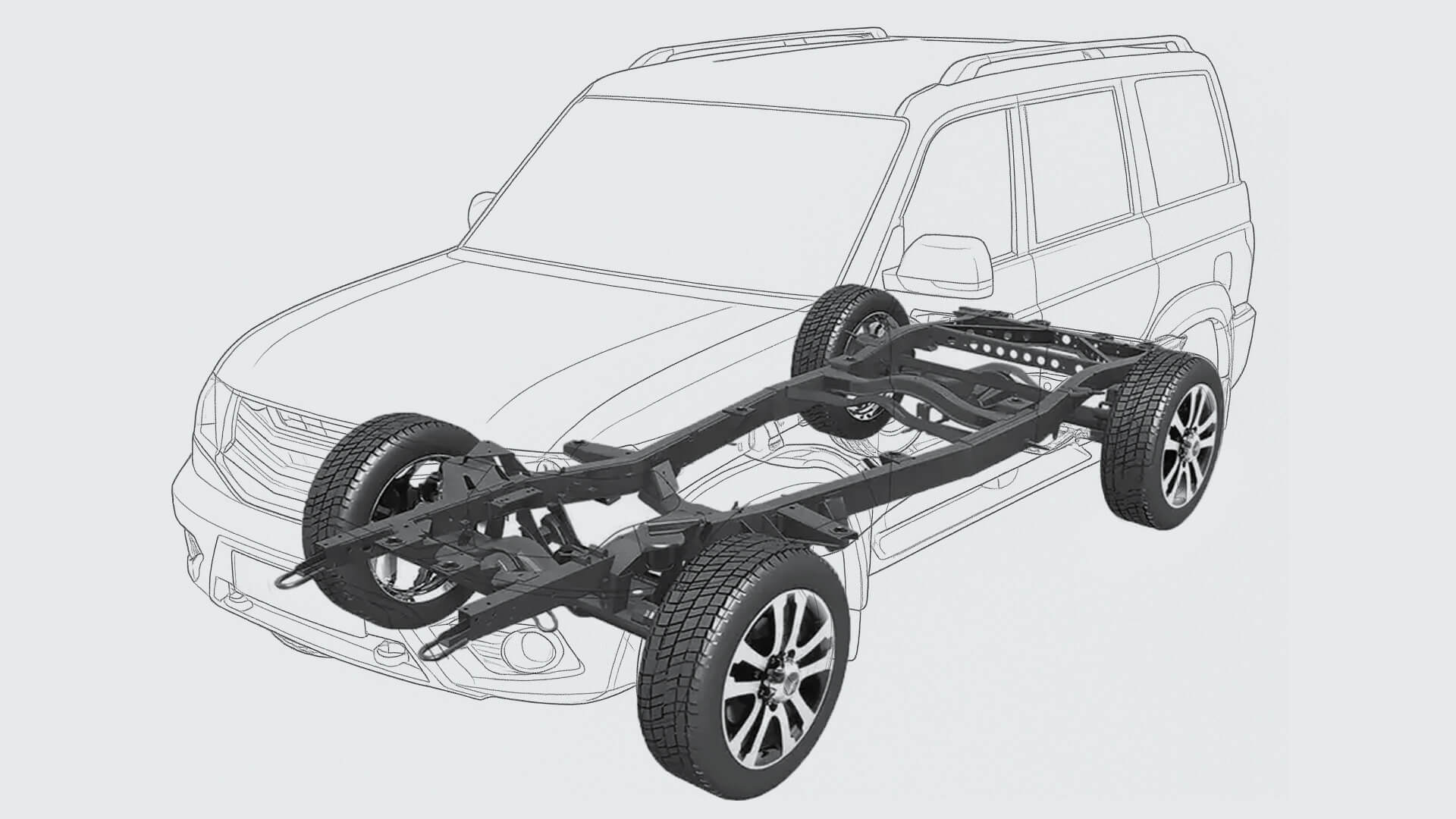 - Рамная конструкция. Это основа основ. Представьте себе скелет. Несущий кузов, как у большинства современных авто, - это когда вся нагрузка ложится на саму оболочку. Рама - это мощный стальной каркас, на который уже крепятся кузов, двигатель и подвеска. Для вас это означает одно: колоссальная прочность. Рамный внедорожник выдерживает диагональные вывешивания, удары о грунт и езду с полной загрузкой по пересеченной местности без риска деформации кузова.